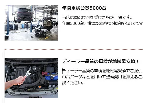 デザイン面では、YouTubeのサムネイルのようなインパクトのある画像とともに、自社の整備日記をコンテンツ内に掲載しており、親しみやすく、利用しやすい雰囲気が伝わってきます。