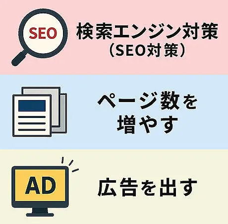 Aアクセスを増やしたい場合は、下記の3つに取り組んでください。