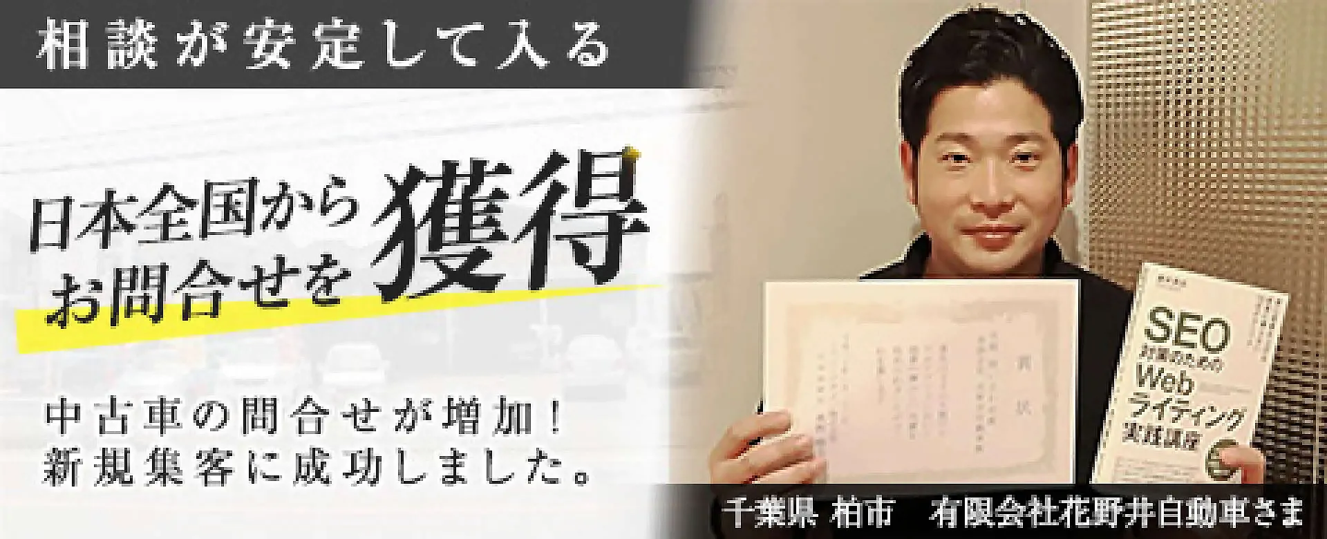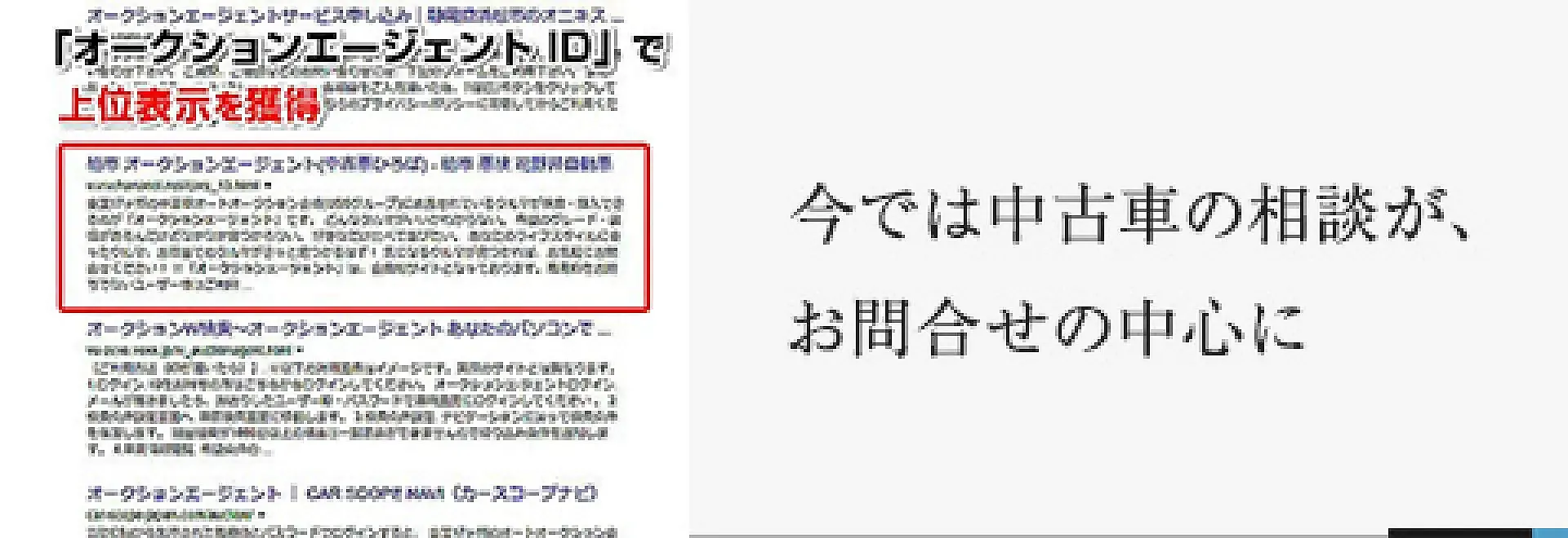 具体的にはオークション代行の集客の中心であるオークションエージェント(編集注:旧名 中古車ひろば)だけでは掲載できない情報をホームページにどんどん掲載していき、お客様の信用を高める作戦を取りました。例えば過去の落札、販売事例やアフターサービスの情報などです。この結果、全国からお問合せが入るようになり、ポータルサイトの信用性を高めるためにホームページを使うのはとても有効だと感じています。