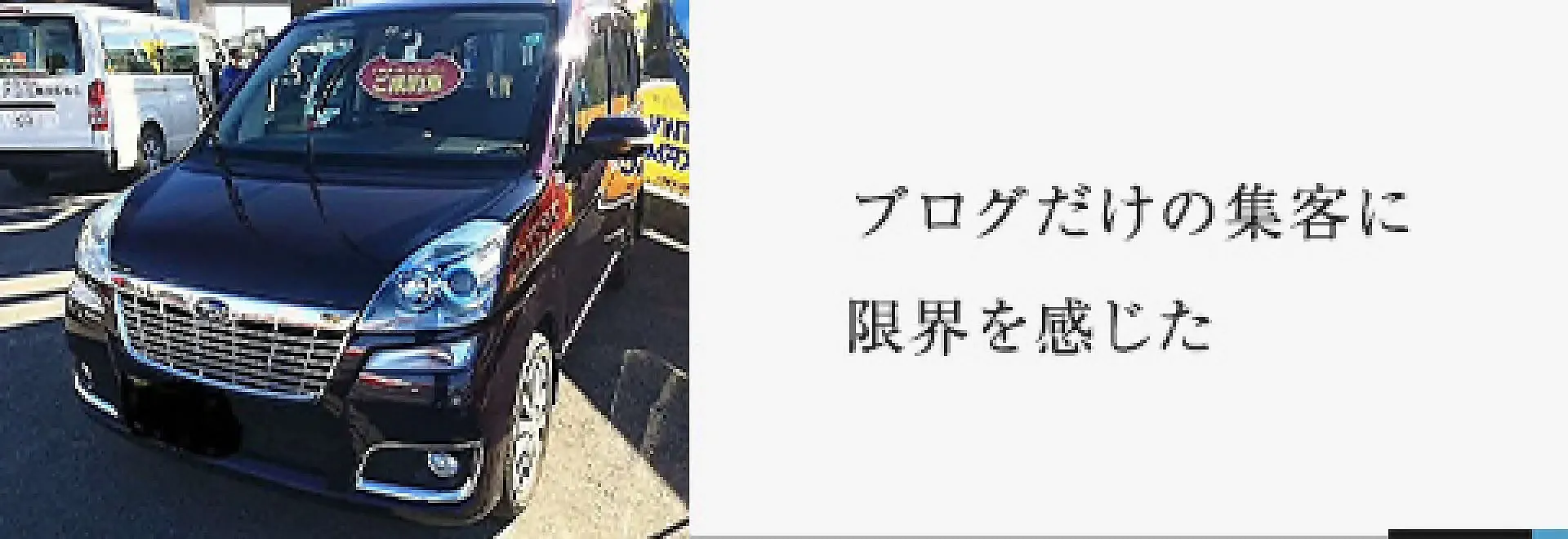 今思えば、やっぱりブログだと自分のページにライバル店やカーセンサーの広告が表示されるため、せっかく集めたお客さんがそちらに流れていたんだと思います。