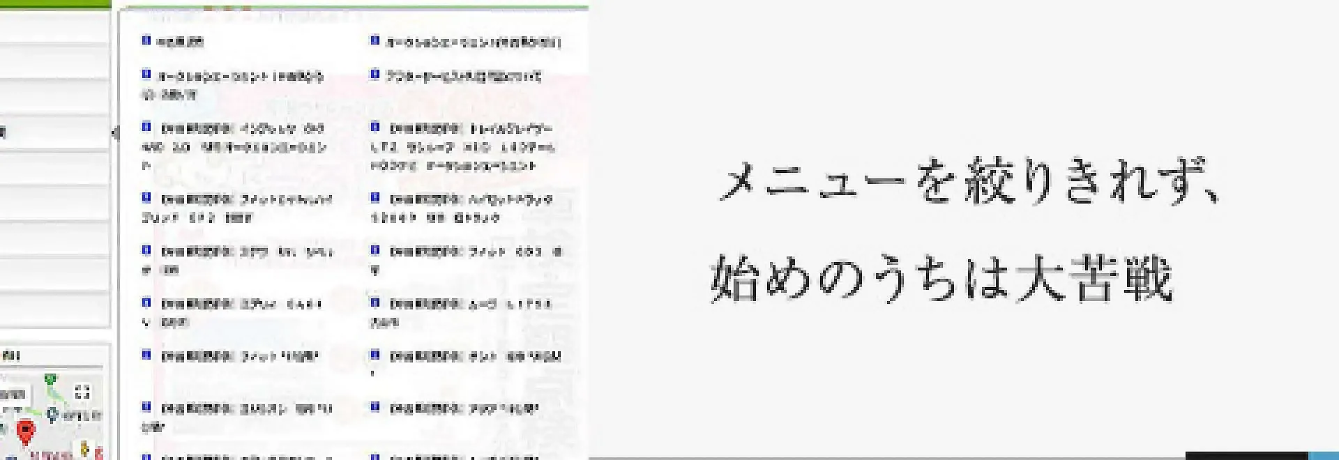 ホームページを作った当初は、あれも集客したい!これも集客したい!とメニューを増やしてばかりいました。結果、どのメニューも検索上位にあがらず見込の高いアクセスがほとんど集まらない状況でした。