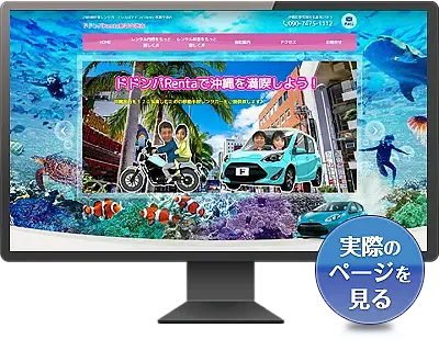 ドドンパRenta那覇空港店さまのホームページでは、写真とテキストがバランスよく配置されているため、視線の誘導が自然で読みやすい点がポイント。サービス内容や店舗の雰囲気が一目で伝わるよう工夫されています。