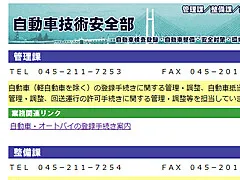 自動車技術安全部のページには管理課や整備課などの連絡先や、