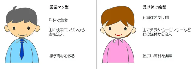 ひとつは営業マンのように単体で売上に貢献する営業マン型、