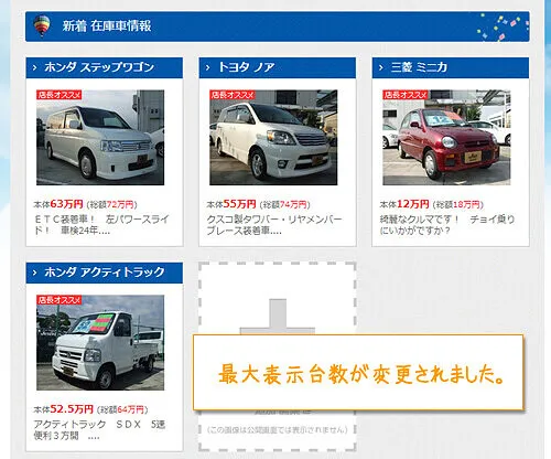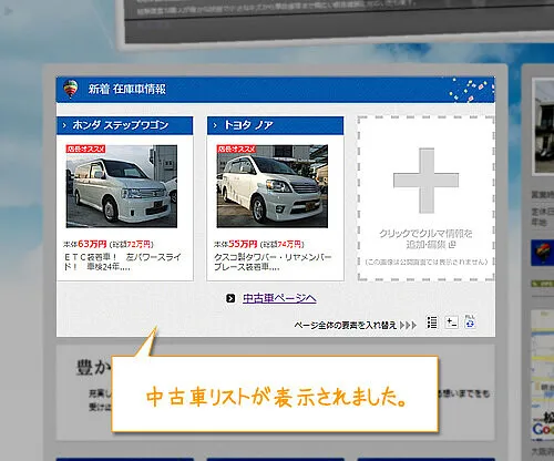 「トップページに在庫車リストの表示が可能」になったことと