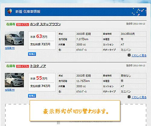 ・トップページにも在庫車リストが表示可能